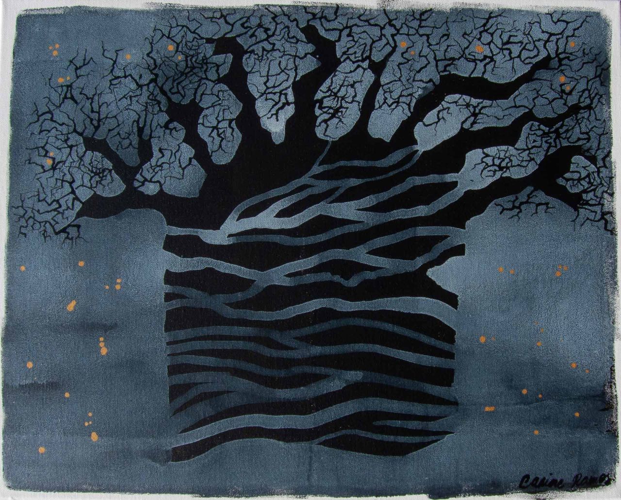 La toile devient une terre fertile d’où jaillissent des formes figuratives végétales ou des taches, des empreintes, des traces toujours en quête d’une histoire à raconter, d’un souvenir à raviver et partager.