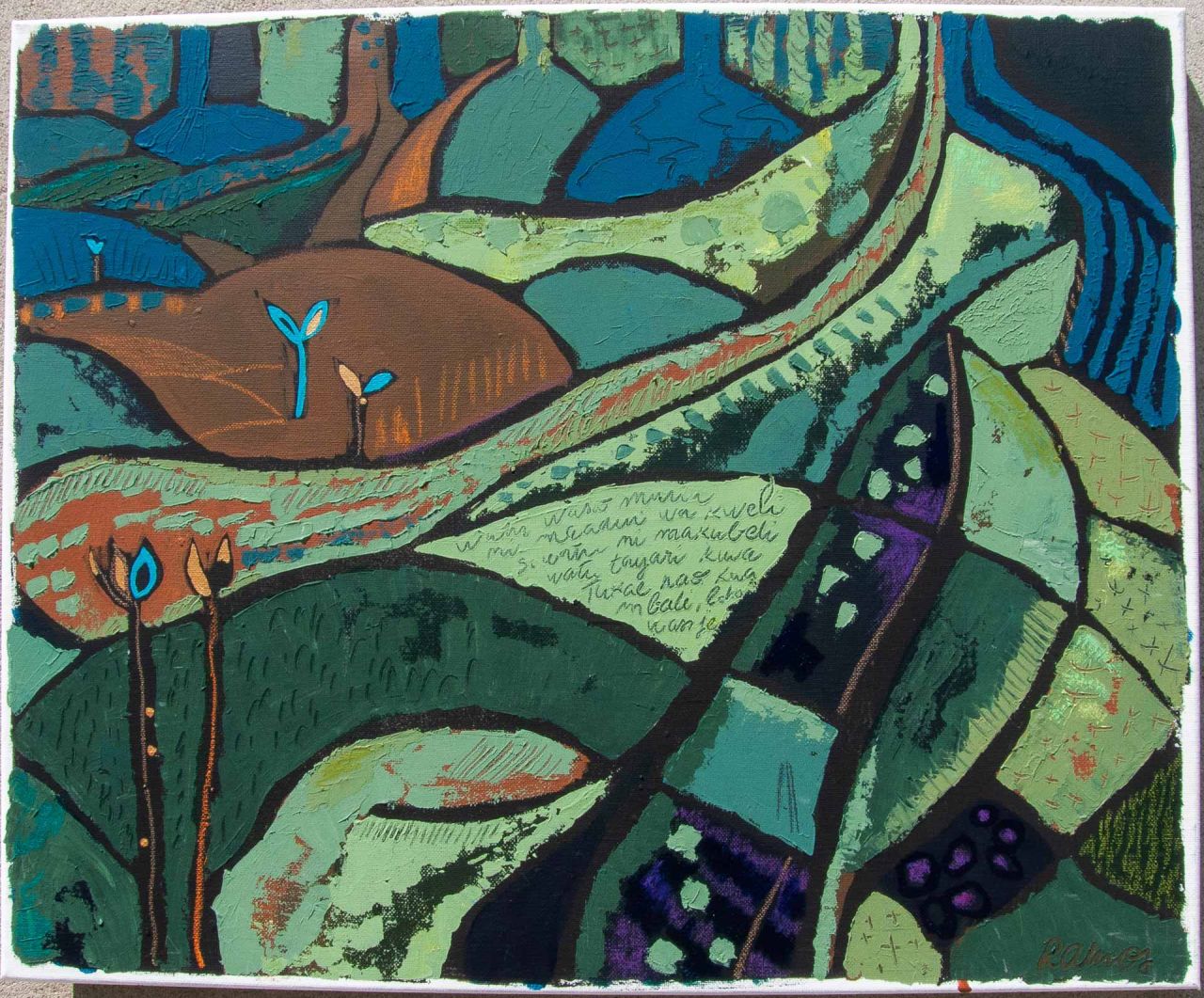 50x61cm, acrylique et pastels à l’huile sur toile
