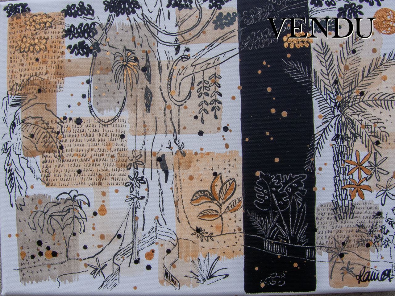 Une jungle étouffante et les couleurs couvrent totalement la toile dans une multitude de motifs.