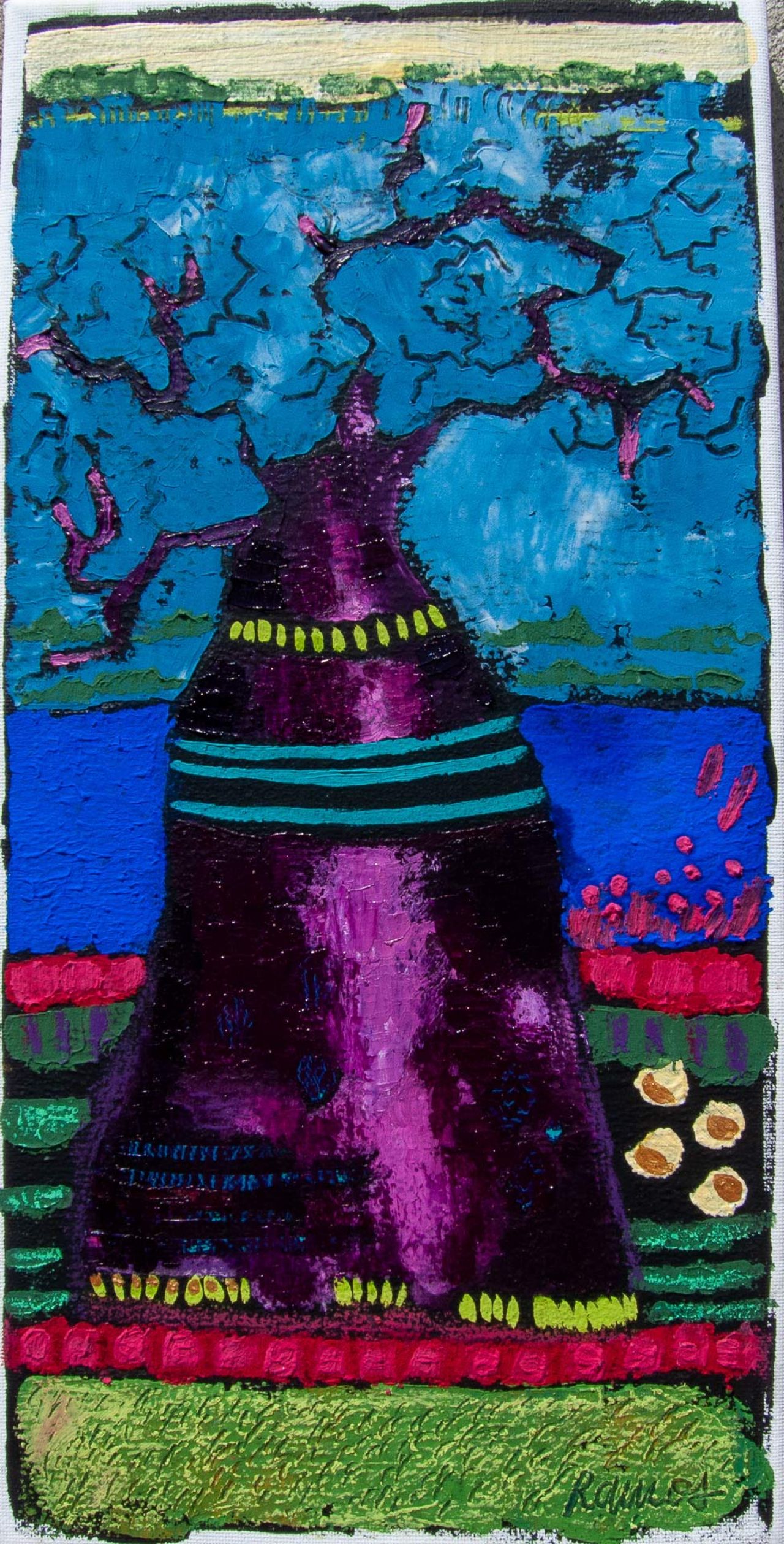 La toile devient une terre fertile d’où jaillissent des formes figuratives végétales ou des taches, des empreintes, des traces toujours en quête d’une histoire à raconter, d’un souvenir à raviver et partager.